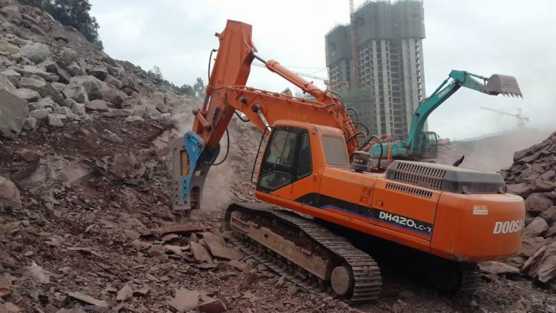 斗山420型配175破碎錘在巴中施工現場